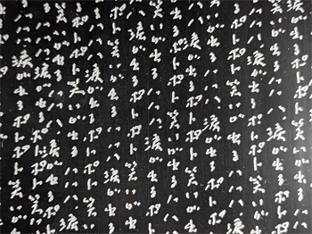 写経の様に同じ言葉がびっしり書かれた作品。これらは福岡さんが内に秘めた魂の叫びであり、自分に対しての問いでもある。