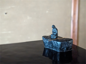 故 福岡さんが愛した、彫刻家 平櫛田中さんの作品「釣隠」という釣り人の木彫作品があり、そのオマージュとなっている。