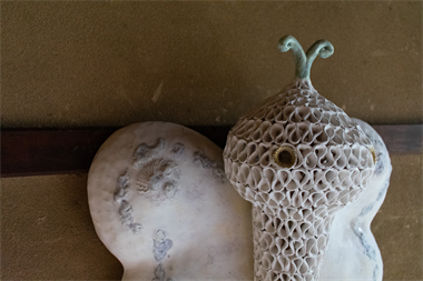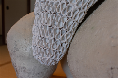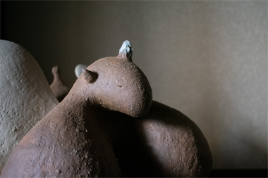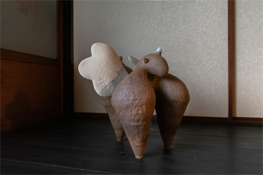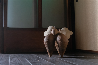 写真を撮っていると感じたんですが、土間の作品は女性らしいですよね。中が割れて空洞になっているから覗き込むと子宮に繋がっている様な。先ほどのお話で、仲間を作っているというワードをを聞くと、土間の入口に子宮を連想させる母体の作品があって、室内に入っていくと仲間が点在していてストーリー性を感じます。