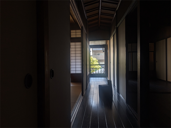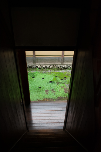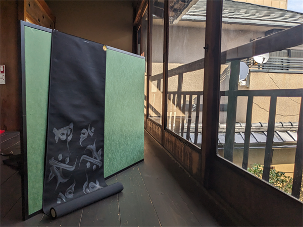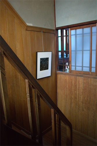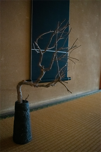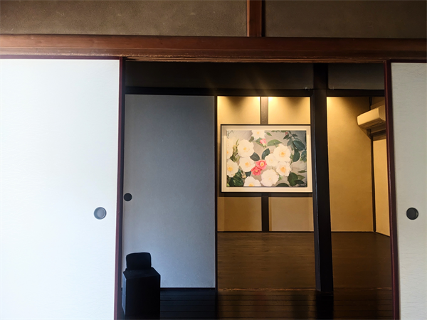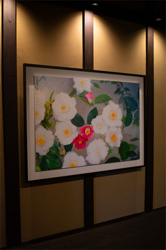 展示では、この利休の美意識を展示構成にし、2階天高の間にはカラーの椿の写真を1枚だけ展示。