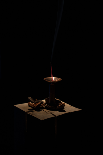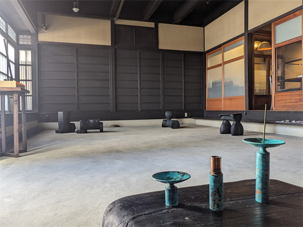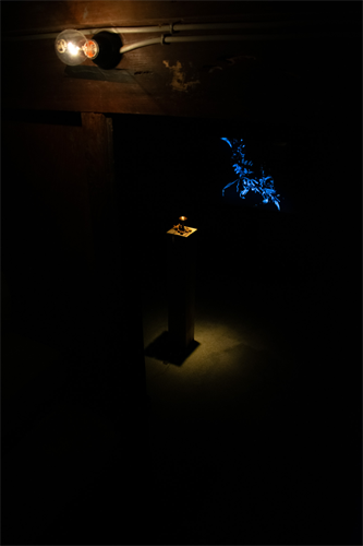 プロダクトデザイナー 三上嘉啓のお香と、武田真彦のサウンドもコラボにより、防空壕の重工な空間では、亡き人への祈りとして旅人を見送る形ではまっていた。