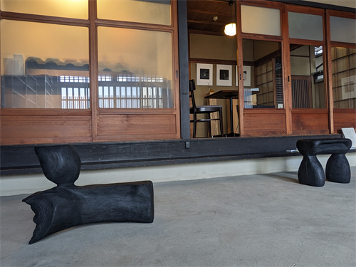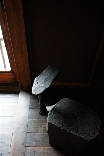 作家の拠点である和歌山県の里山で伐採されたニッキの木から作られている椅子。