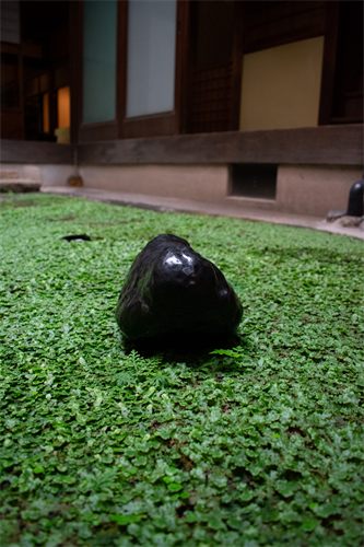 防空壕には椿の香り、椿の殻を展示する事で、2階と地下とをリンクさせています。