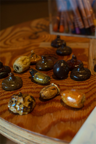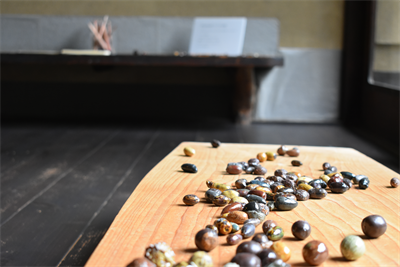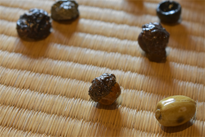 都市や森で採取した⽊の実を型取り、施釉焼成し、磁⼟製の⽊の実を得た。