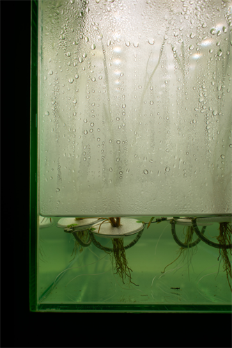作品では19世紀末から試みられてきた電気栽培技術を⽤い、微弱な電流や磁場が稲に作⽤する様⼦を可視化する。科学と信仰、⾃然と技術の境界が揺らぐなか、私たちが失いつつある“⾃然との対話”をもう⼀度感じ取るための試みである。