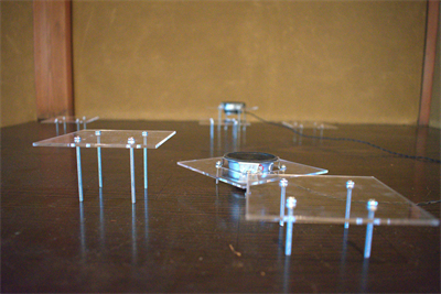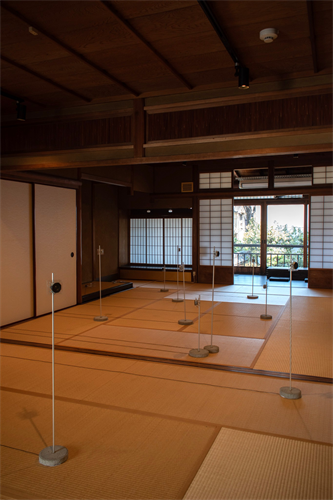 作品を構成する複数のスピーカーは共棲する異種の⽣きもののように配置され、同質化社会について議論する声がざわめく。私たちはそこで多様な他者の声に⽿を傾け、また⾃らも誰かの思考をゆさぶるような「庭」の体験に誘われる。