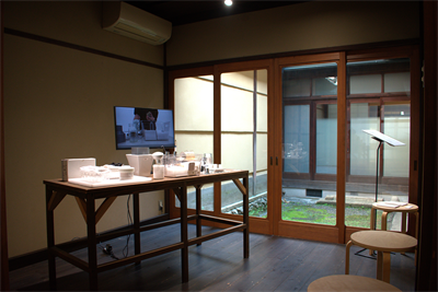 「収める(収納する)」という⾏為は、私たちの⽇常⽣活のなかで「気にかけないでいい状態」を⽣み出してくれるものである。作品では、オブジェクトを実際に収める体験を通じて、「収める(収納する)」という⾏為の感覚やその過程での思考を振り返る。そのことを通じて、⽇々の⽣活のなかの感覚的な判断、さらには感性的なふるまいについての思考を促す。