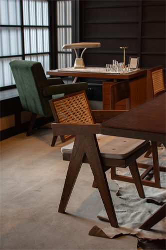 デザインを手がけたピエール・ジャンヌレの家具は、ほそ継ぎ、あり継ぎ、ほぞ穴といった伝統的かつ高度な木工技法によって生み出されています。